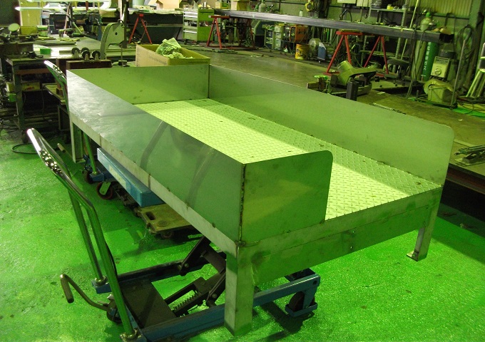 この製品はチェッカープレートと、SUS板とアングルを使って製作しました。